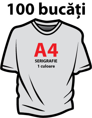 Pentru 100 de tricouri personalizate prin serigrafie in o singura culoare de dimensiunea maxim A4 (20 x 30 cm) pretul este de 35 lei / bucata. Tricourile sunt de diferite marimi si culori.