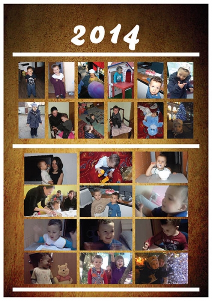 Calendarul are 13 pagini color, toate personalizate cu pozele dumneavoastra - fiecare luna are cate doua poze, iar pe coperta apar toate cele 24 de poze. Calendarul este realizat pe hartie de 120 gr/mp