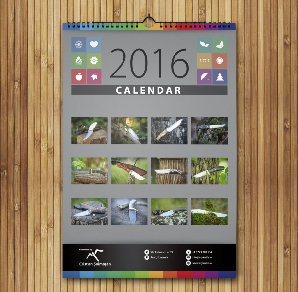 Calendarul are 13 pagini color, toate personalizate cu pozele dumneavoastra - fiecare luna are o poza, iar coperta este cu toate 12 poze. Calendarul este realizat pe hartie de 120 gr/mp. Calendarul poate avea o paleta diferita de culori fata de cele propuse pe site.
