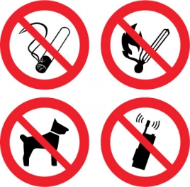 Autocolant semne interzis se poate lipi pe diverse suprafete. La cerere se poate realiza si pe autocolant transparent, dar si pe suport de PVC de 3 mm. Dimensiunea este 10 x 10 cm. La cerere se pot realiza si alte dimensiuni. Pretul este pe bucata. In imagine sunt 4 bucati diferite. Cand faceti comanda va rog sa specificati ce semn doriti.