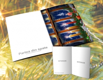 Felicitare de craciun personalizata cu textul si sigla firmei dumneavoastra. Dimensiunea acestei felicitari este 15 x 10 cm impaturit si 20 x 15 cm desfasurat. Personalizarea este si in interior. Pretul include si plicul personalizat. Pretul este pe bucata, comanda minima este de 5 bucati, pentru cantitati mai mari oferim reduceri considerabile.