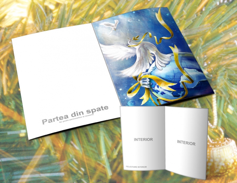 Felicitare de craciun personalizata cu textul si sigla firmei dumneavoastra. Dimensiunea acestei felicitari este 15 x 10 cm impaturit si 20 x 15 cm desfasurat. Personalizarea este si in interior. Pretul include si plicul personalizat. Pretul este pe bucata, comanda minima este de 5 bucati, pentru cantitati mai mari oferim reduceri considerabile.