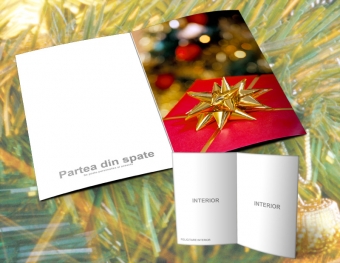 Felicitare de craciun personalizata cu textul si sigla firmei dumneavoastra. Dimensiunea acestei felicitari este 15 x 10 cm impaturit si 20 x 15 cm desfasurat. Personalizarea este si in interior. Pretul include si plicul personalizat. Pretul este pe bucata, comanda minima este de 5 bucati, pentru cantitati mai mari oferim reduceri considerabile.