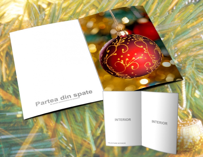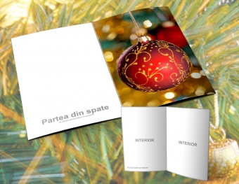 Felicitare de craciun personalizata cu textul si sigla firmei dumneavoastra. Dimensiunea acestei felicitari este 15 x 10 cm impaturit si 20 x 15 cm desfasurat. Personalizarea este si in interior. Pretul include si plicul personalizat. Pretul este pe bucata, comanda minima este de 5 bucati, pentru cantitati mai mari oferim reduceri considerabile.