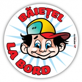 Baietel la bord sau Bebe la bord. dimensiune 10 x 10 cm. La cerere se pot realiza si alte dimensiuni. Pentru cantitati mia mari se pot personaliza cu logo-ul dumneavoastra. Baby on bord.