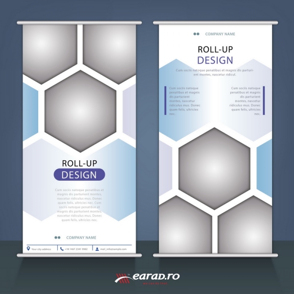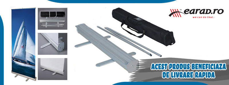 Sistem expozitional potrivit atat indoor, cât si outdoor. Roll-Up-ul este prevazut cu un sistem retractabil de tragere a printului in caseta, care asigura atat protectia printului cat si o portabilitate ridicata si un montaj usor si rapid.